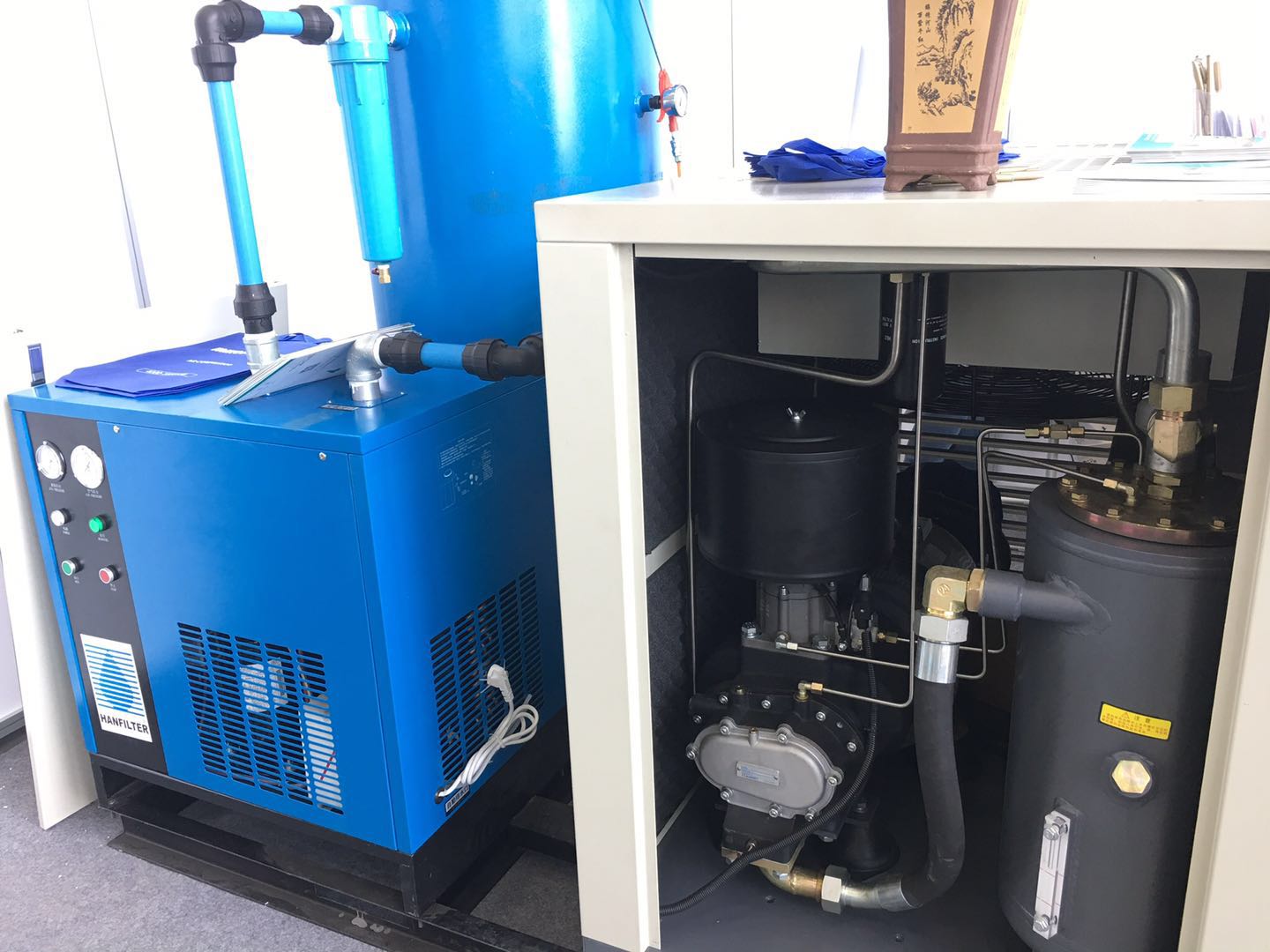 ③、安排进气阀开合巨细,限度气压凹凸,需要时也能够让空压机处正在空转形态。