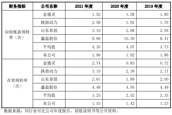 据磁谷科技招股书,2019年至2021年,公司应收账款周转率团体与陕唆使力亲切,略高于金通灵,低于山东章饱、鑫磊股份,重要原故系可比公司正在产物构造、客户构造、信用计谋等方面与公司存正在必定差别。